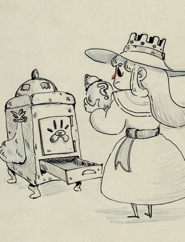 The Little Devil is part of a bigger world where magic is connected to hats, powerful artifacts are crafted by witches and wizards, and a very indecisive young witch and her walking furnace friend.